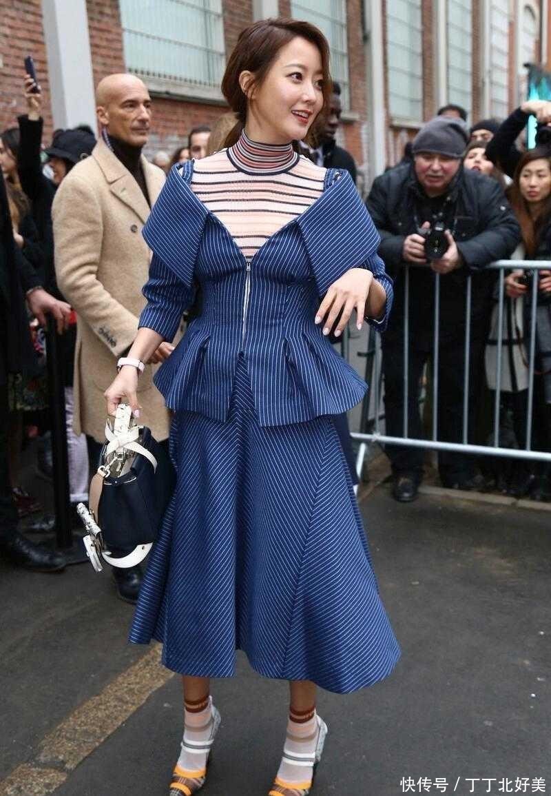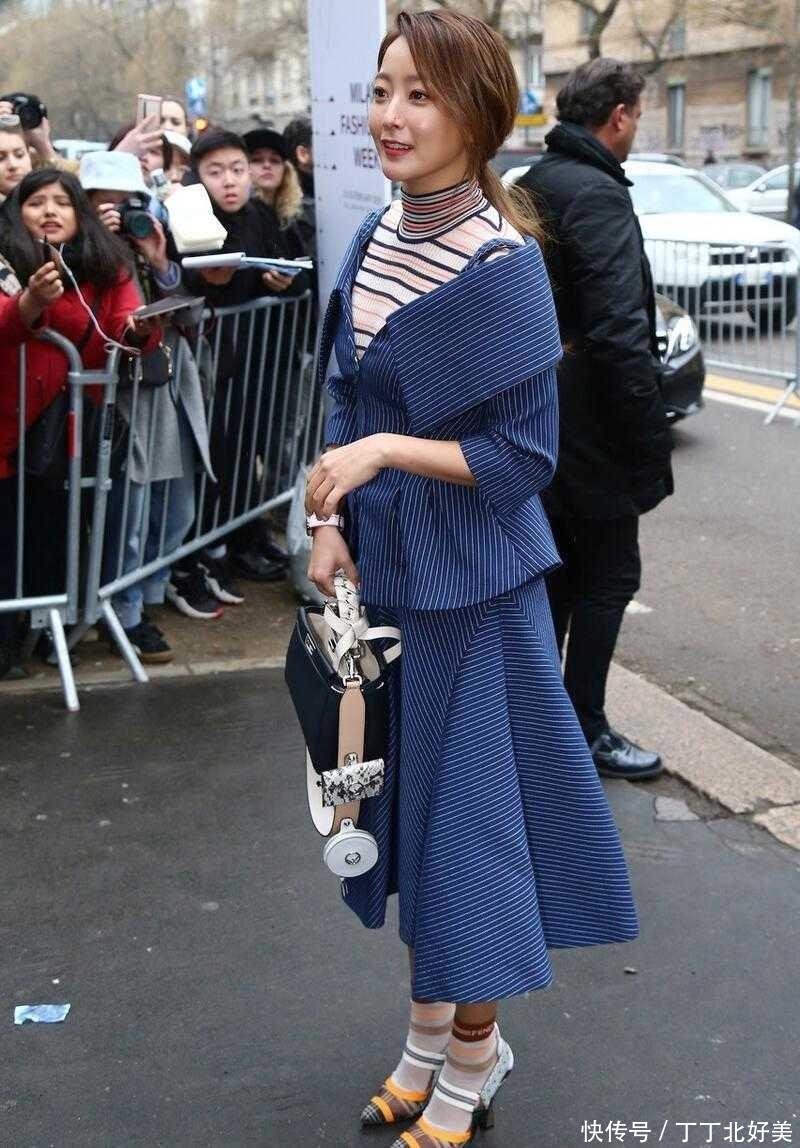 蓝色的条纹套装穿在金喜善的身上也彰显出了前卫回味,这孤独套装搭配确实很特有。领先这件上衣在领口处汲取大v领的照拂,很好的拉长了颈部,而且通过泡泡袖以及通过衣摆的花边贪图也增强了文雅感。