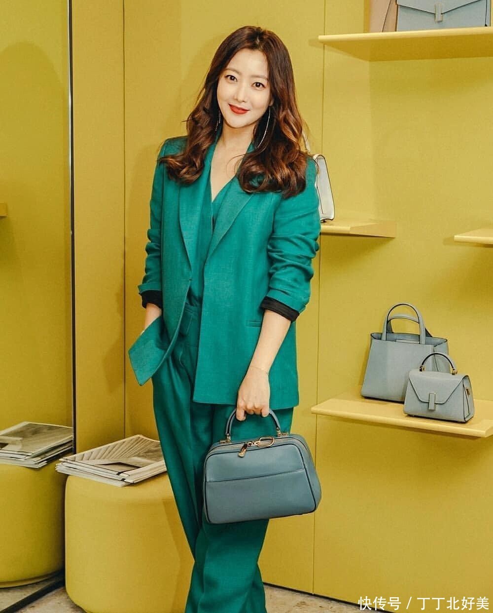 金喜善肤白貌好意思,穿上了这件绿色的西装,呈现出了很酷的气质,而且西装内部也搭配着一样的绿色打底衫,不错和外面的西装方式相匹配,呈现出合资性,这么的绿色显得愈加逸群绝伦,很相宜春天。