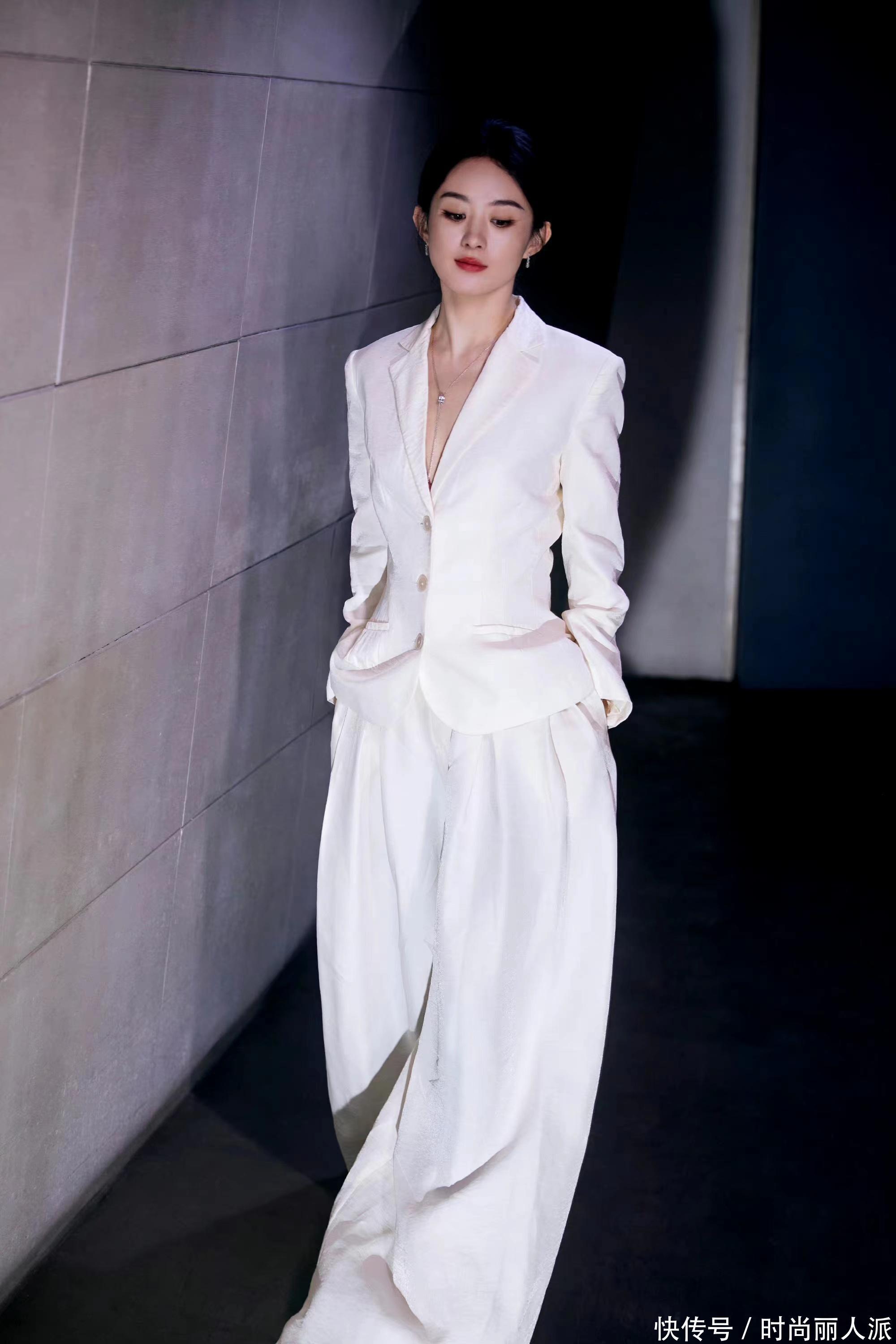干涉电影宣传行径时,除了拍大俄顷女东谈主味饱和的造型以外,这一套白色深灰西装穿搭也让东谈主印象深化。